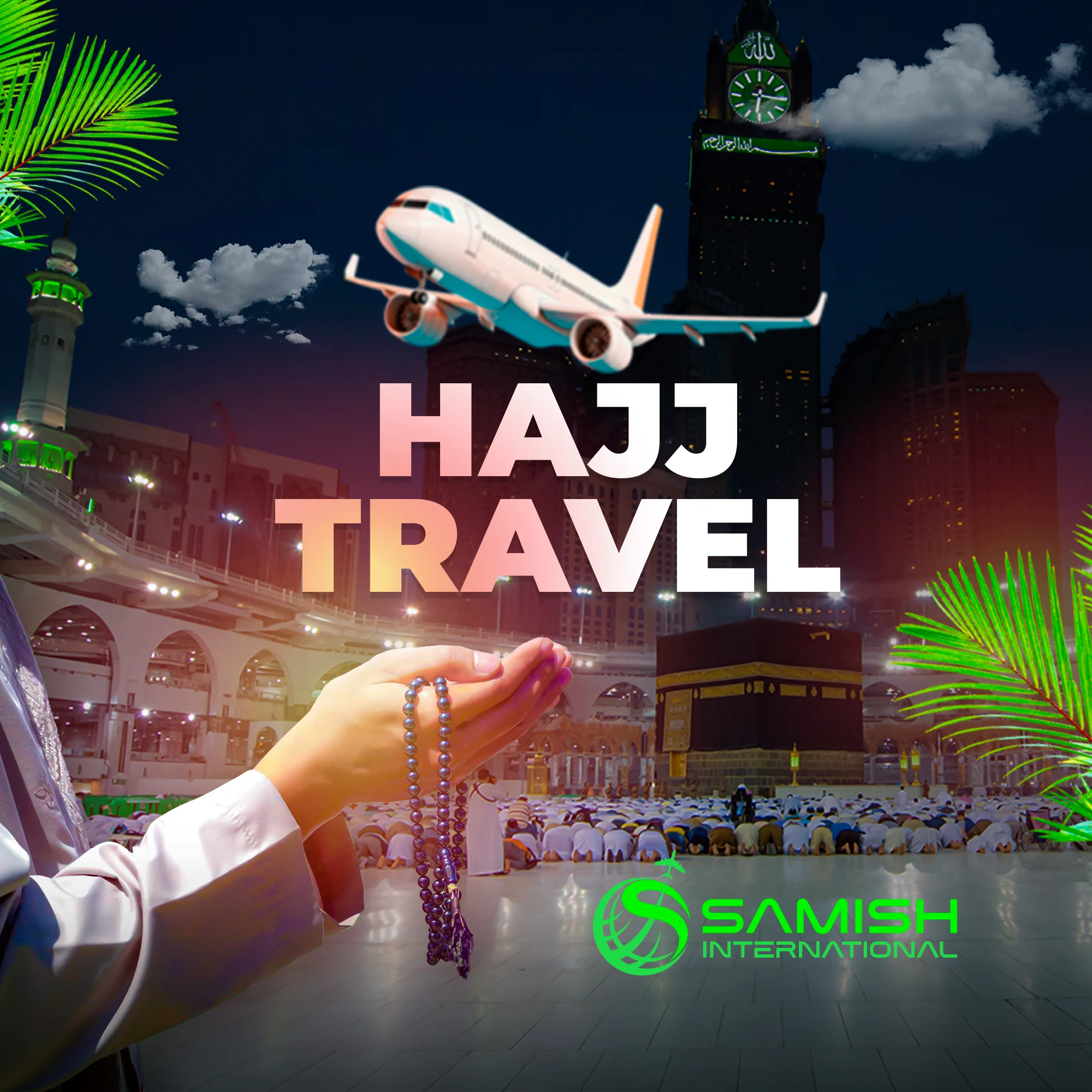 Samish International offers complete and authentic Hajj & Umrah services — ensuring your spiritual journey is peaceful, organized, and worry-free. From visa processing to hotel booking and ground transport, we take care of every detail so you can focus on your prayers.